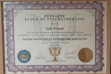 Je suis Julie, Maître Hypnothérapeute certifiée et Praticienne Bien-être.