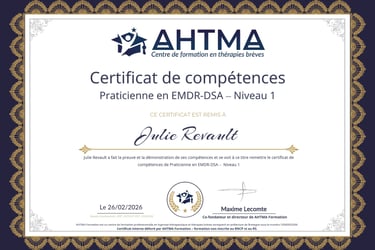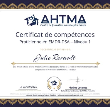 -Certifiée en EMDR-DSA (Ahtma formation)